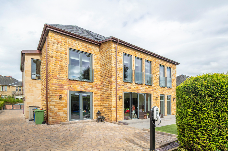 The Quarry recently provided stone for the construction of a private house in Bearsden, Glasgow. Cop Crag, quarried in Northumberland, was selected by the homeowners for its striking and unique colour variations—from a warm rusty buff base to swirls of browns and hints of pink. Each stone is one-of-a-kind, ensuring that no two are exactly alike, giving the house a truly individual and distinctive character.